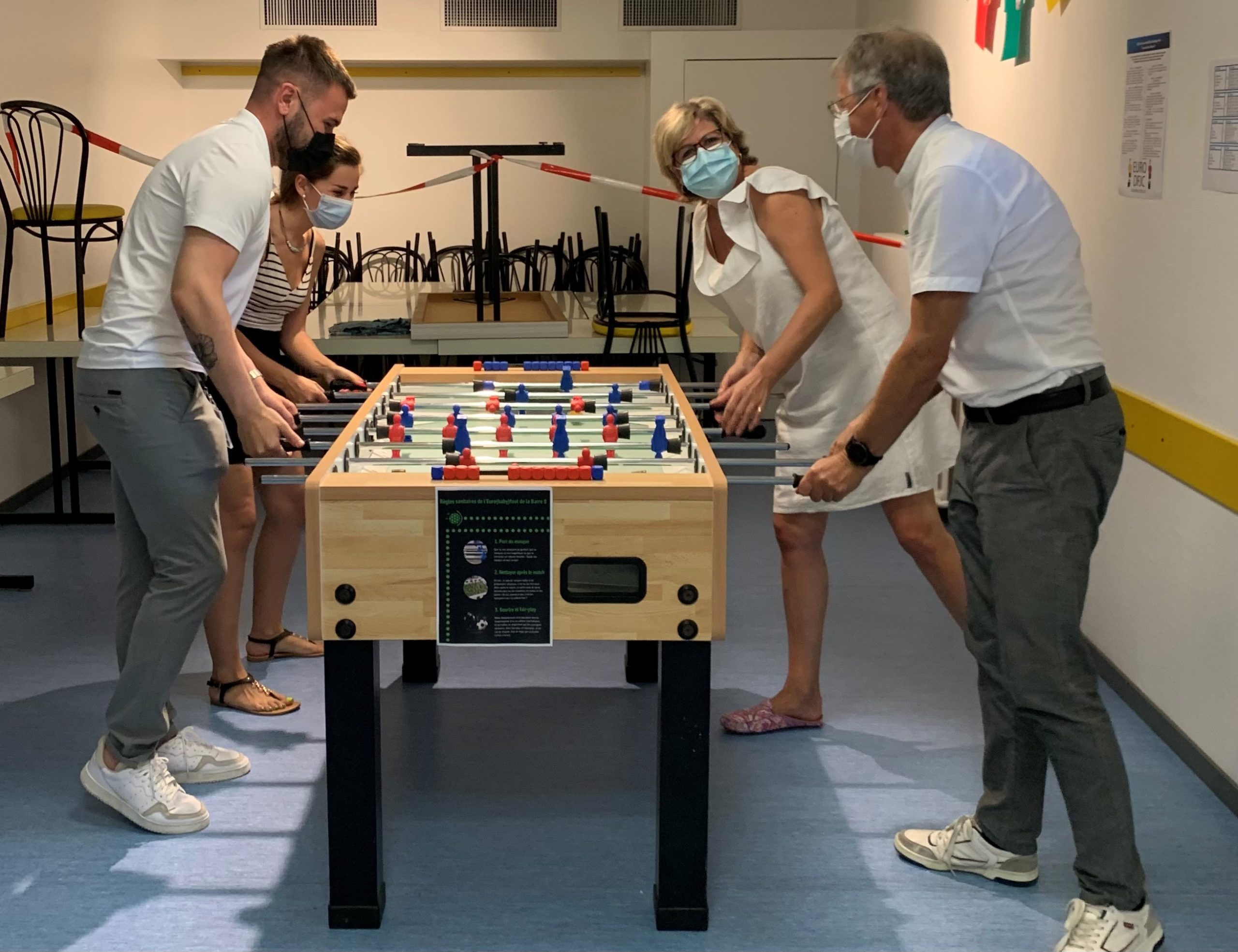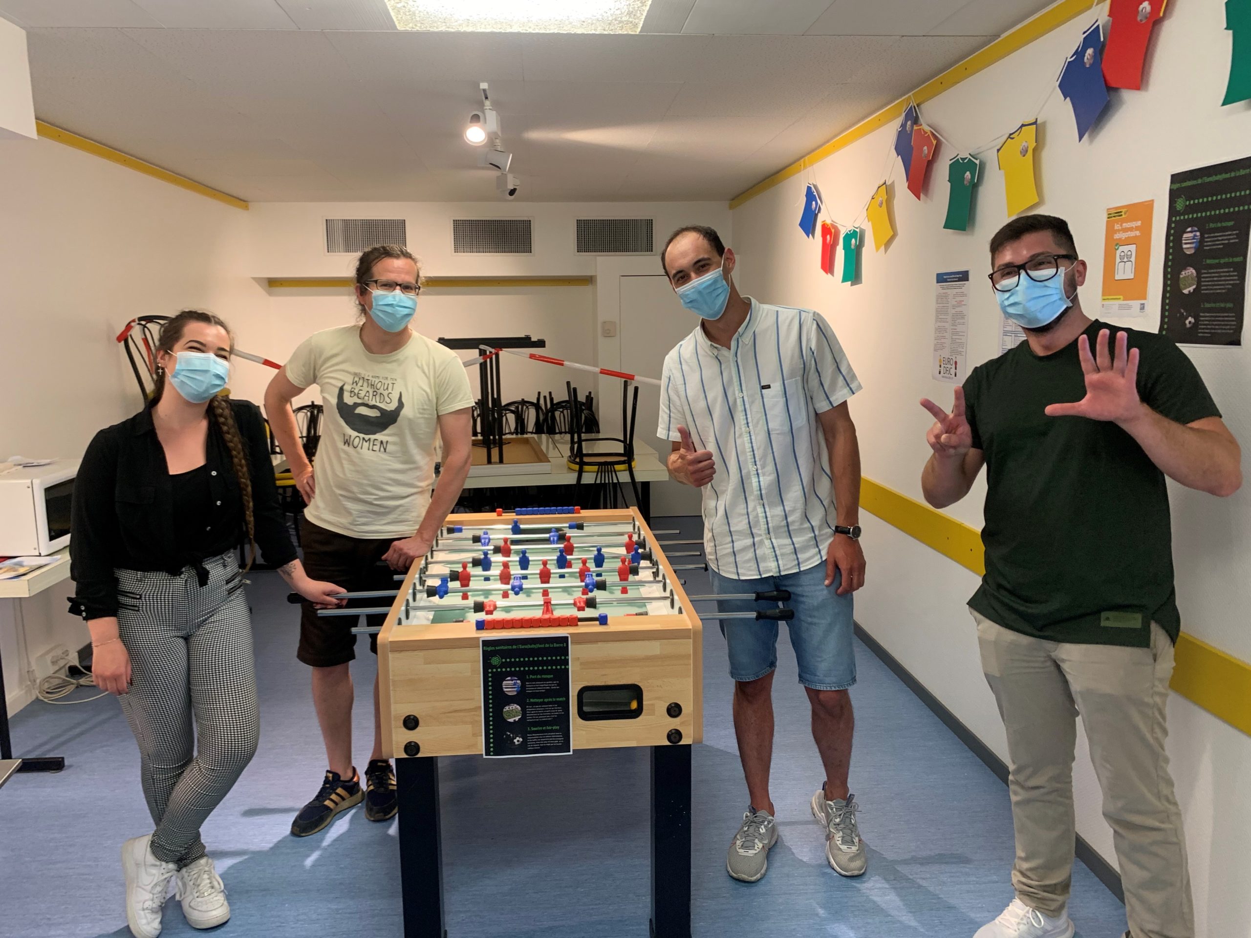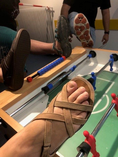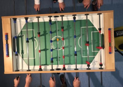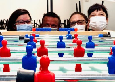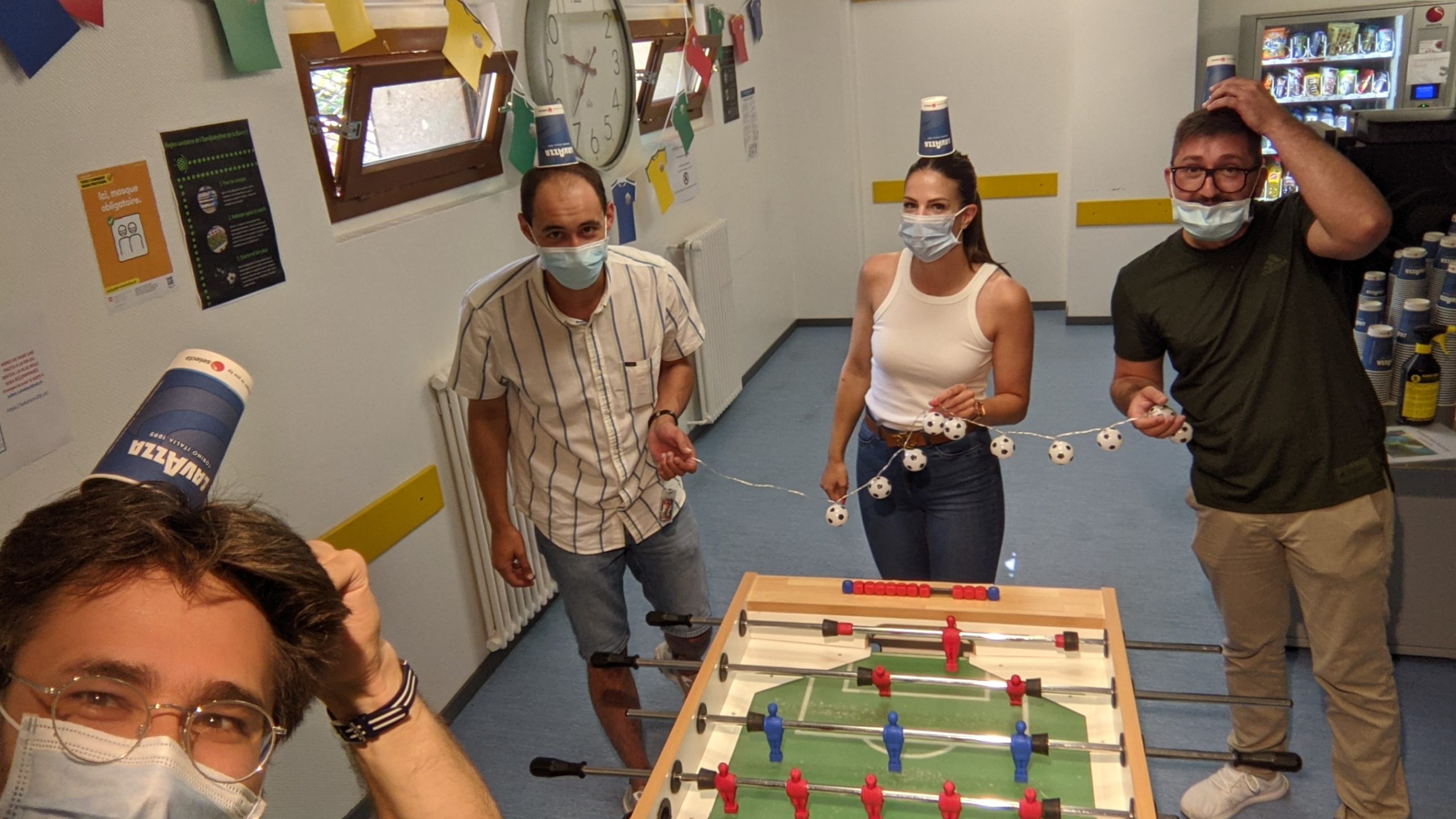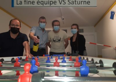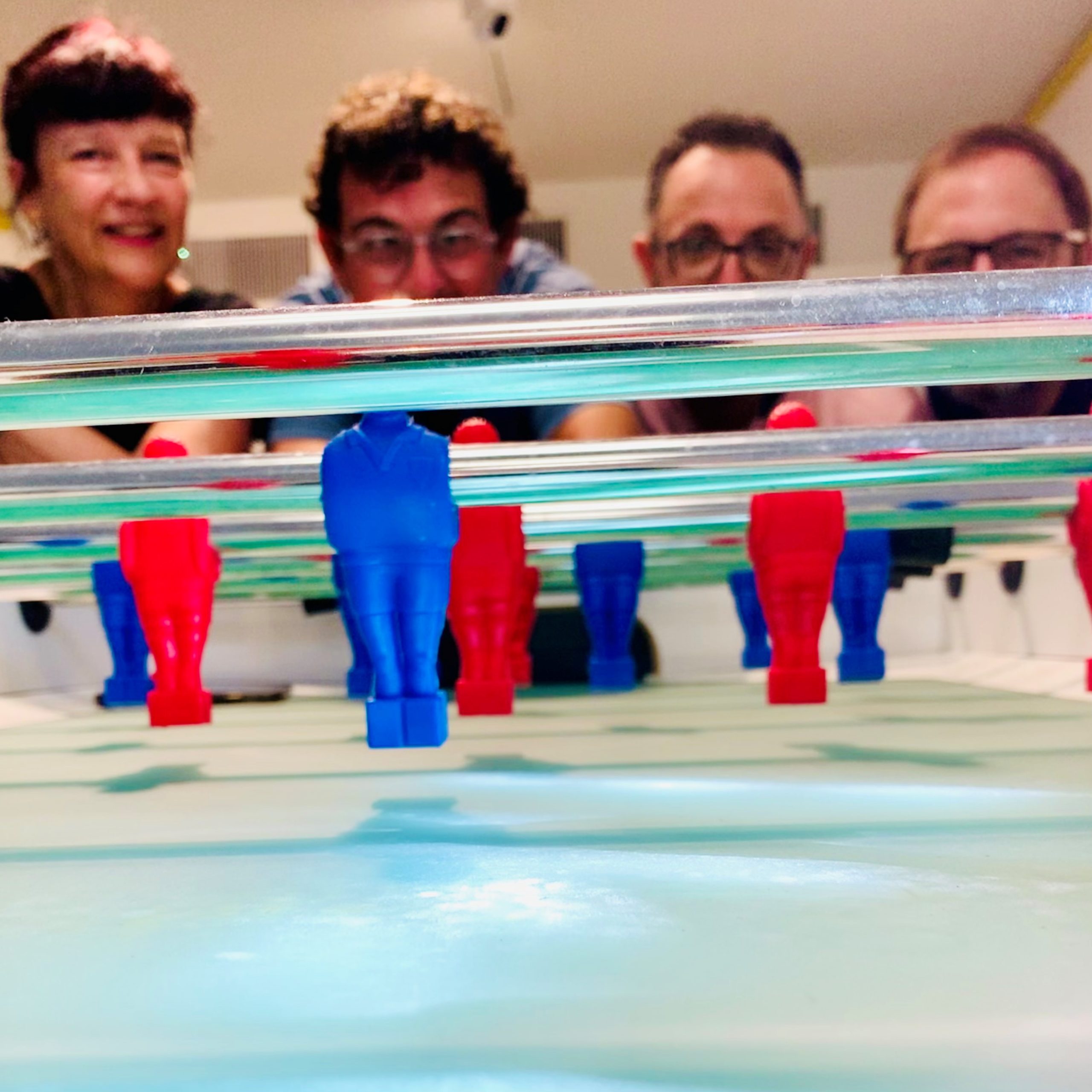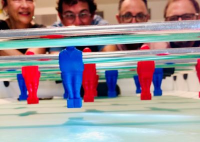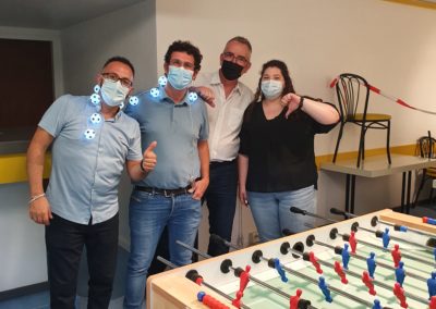 Le quart de finale Les baigneurs – CD Team s’est déroulé dans la bonne humeur. Aucune équipe n’est restée coincée dans l’ascenseur et quelques autogoals ont agrémenté les scores! CD Team est sortie vainqueur des deux matchs.