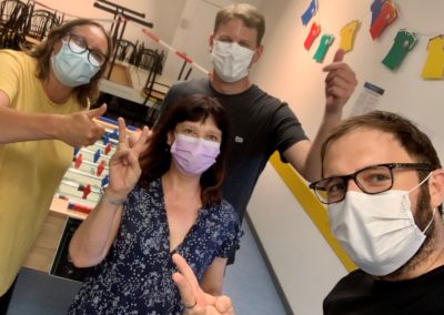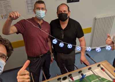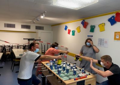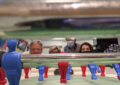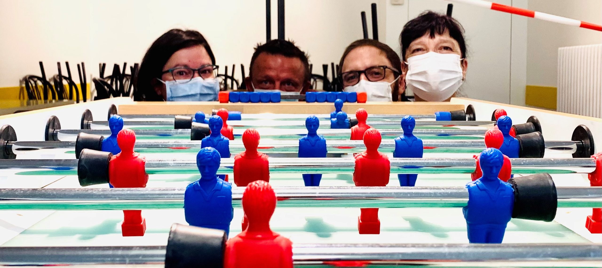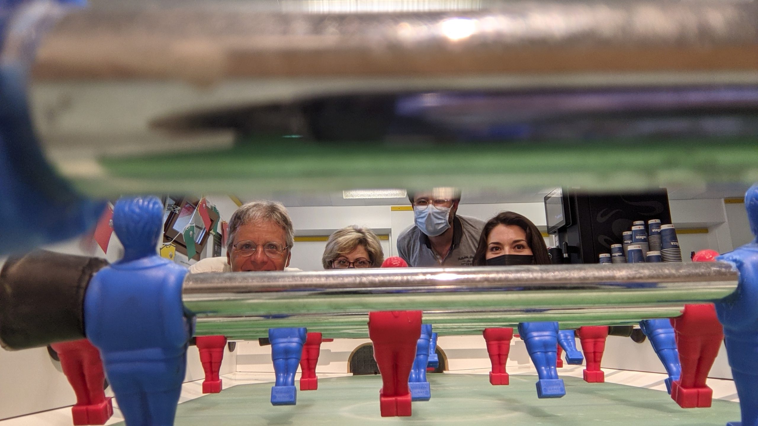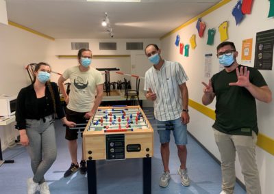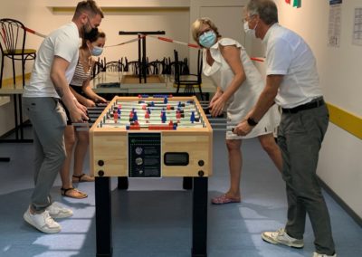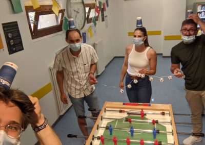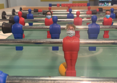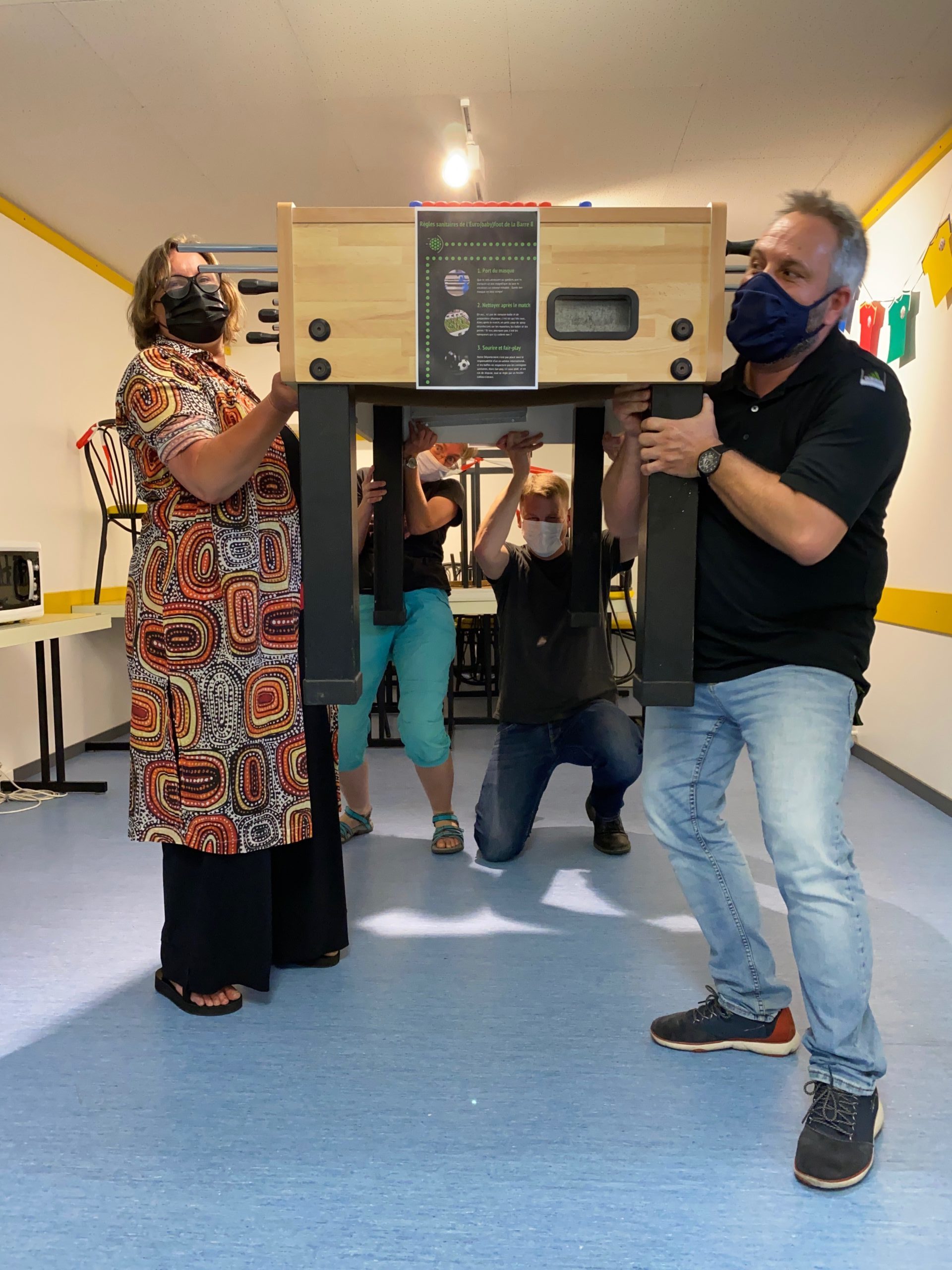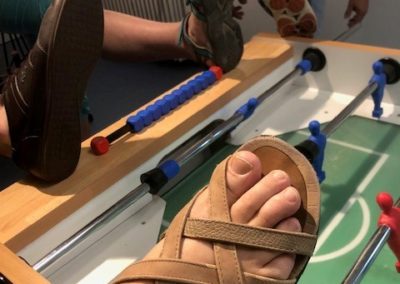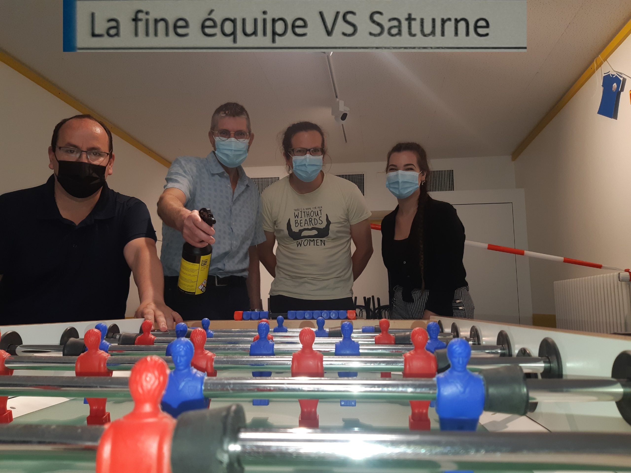 Le quart de finale Les baigneurs – CD Team s’est déroulé dans la bonne humeur. Aucune équipe n’est restée coincée dans l’ascenseur et quelques autogoals ont agrémenté les scores! CD Team est sortie vainqueur des deux matchs.